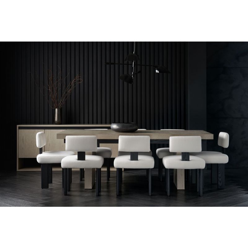 A fusion of modern form and cozy luxury, this dining chair invites guests to linger around the table. Its contemporary design features an ash veneer frame and back splat in a dramatic Basalt finish, softly contrasted by a neutral linen fabric for added style and indulgence. Pair with our Luis dining table for a simple yet sophisticated aesthetic.