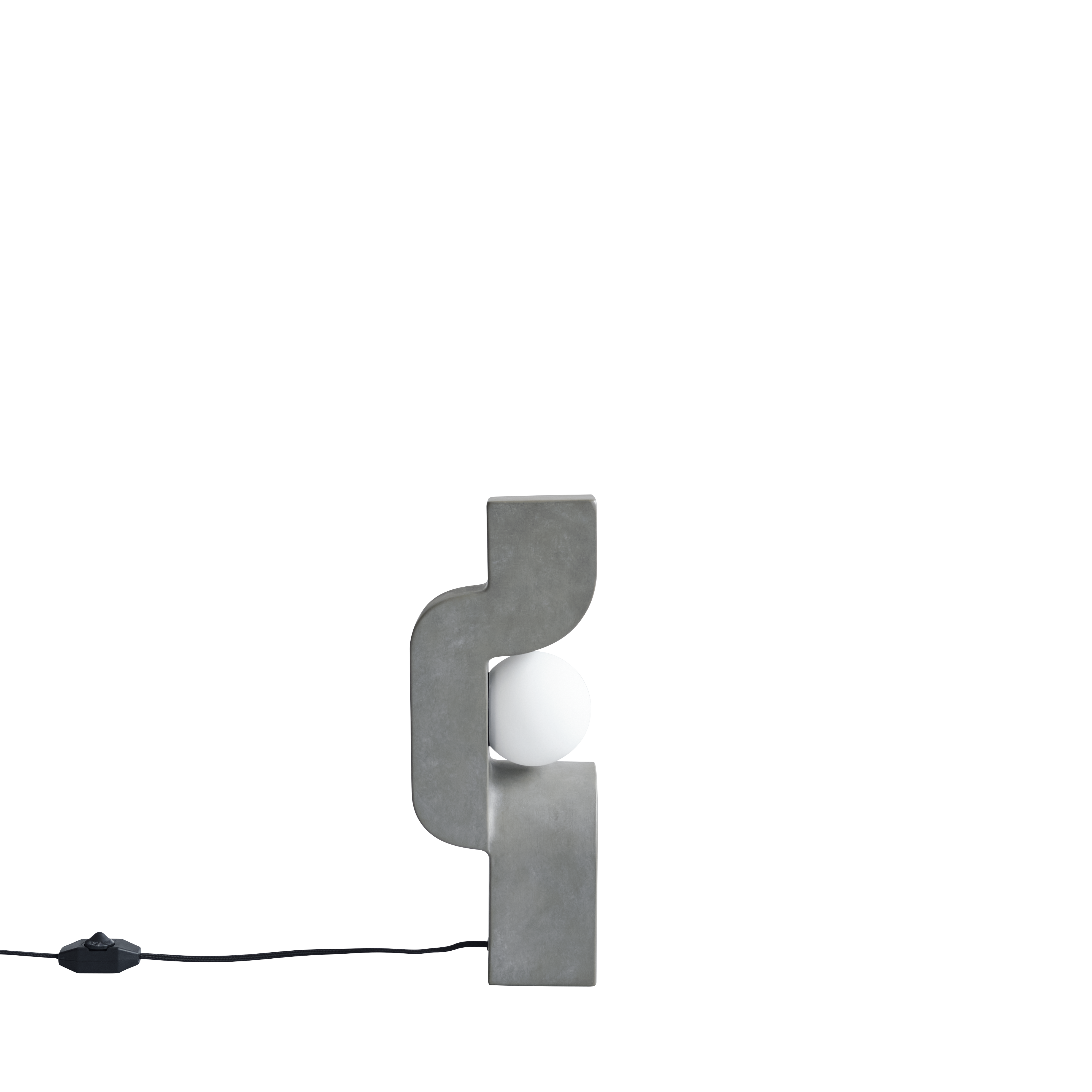 Reminiscing the silhouette of a sitting man. The Sitting Man is a light sculpture with an illuminating glass sphere positioned in the middle of a spiralling composition.